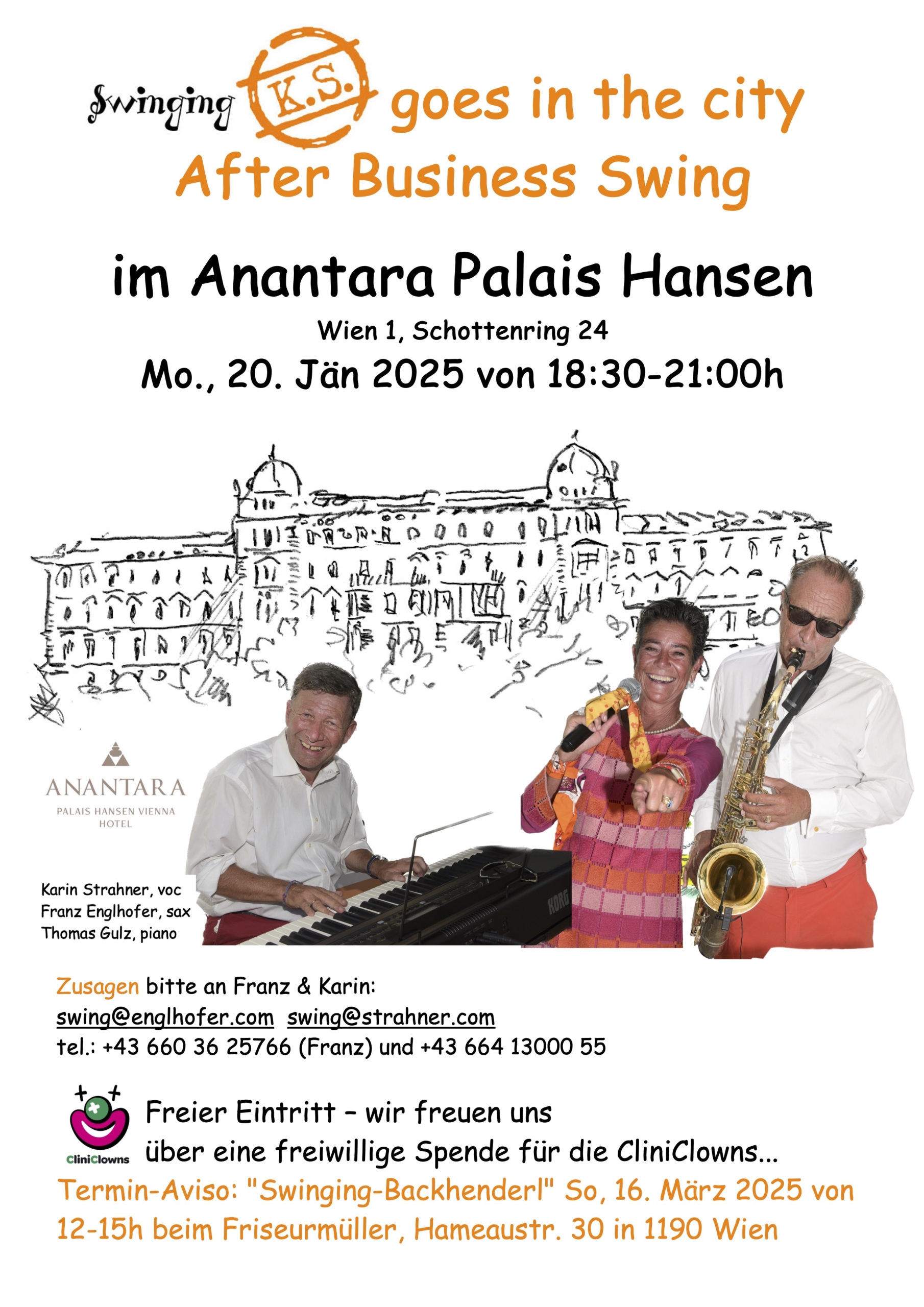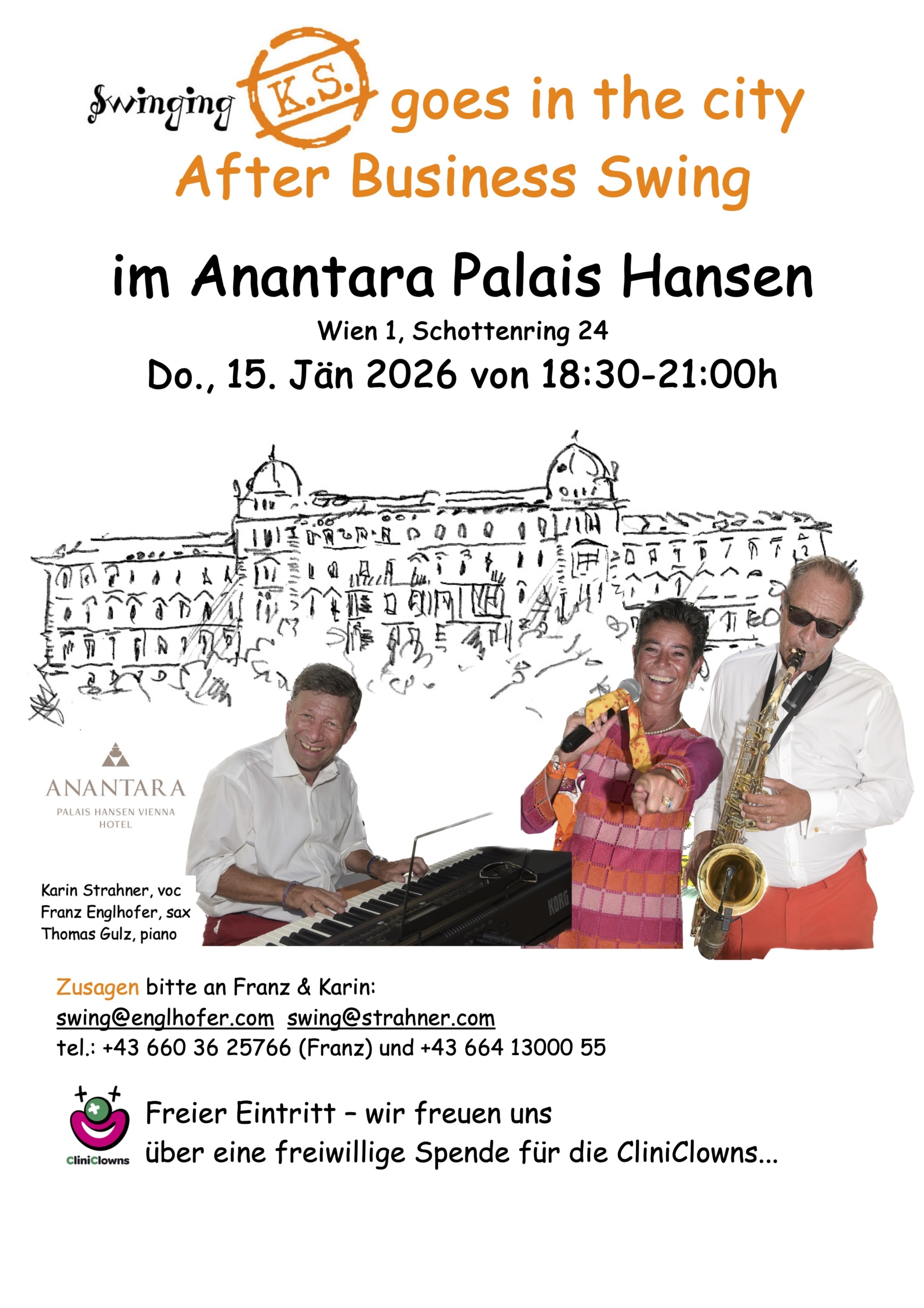 Im Rahmen des „Swing the Lake“ am 2. August am schönen Wörthersee wird uns Thomas Gulz (piano) mit Klängen verwöhnen und zu späterer Stunde werden Karin Strahner (voc) und Franz Englhofer (sax) auch für ausgewählte songs dazu einsteigen. Mehr Details findet Ihr auf www.swingthelake.com